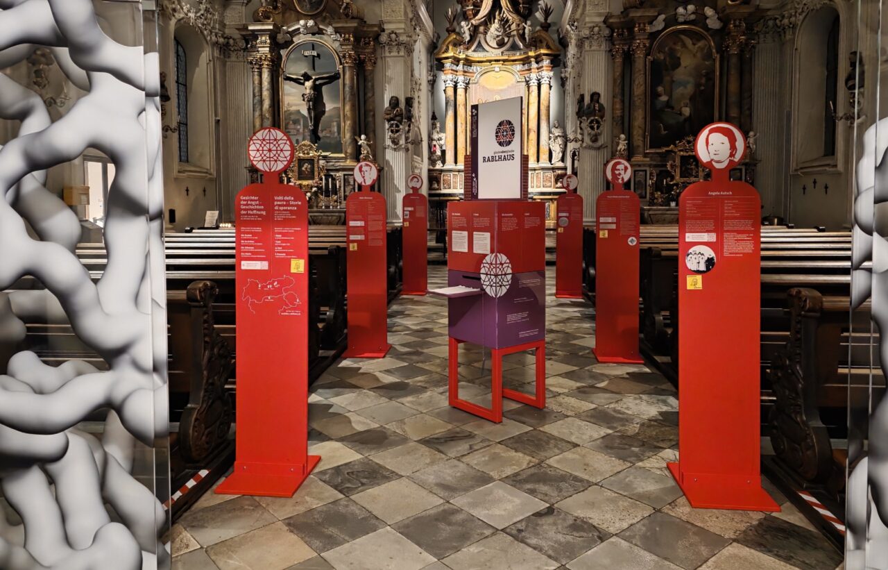 Nach der Präsentation im Landhaus blieb das Mobile Museum Rablhaus weiter in Innsbruck und übersiedelte in die Spitalskirche in der Maria-Theresien-Straße – ein wunderbarer Rahmen für unser Zeichen der Erinnerung.