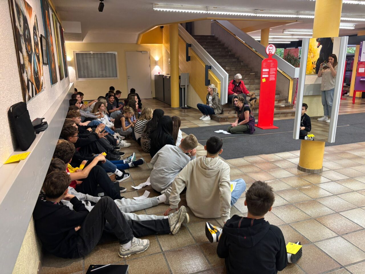 Doch nicht nur wir gaben Geschichten weiter – im anschließenden Gespräch bot sich die Gelegenheit, miteinander über Mut und Widerstand zu diskutieren. Besonders wertvoll war, dass wir dabei auch zwei neue Geschichten von Personen erfahren haben, die während der NS-Zeit andere beschützt bzw. Widerstand gegen das Regime geleistet haben. Wir werden hier weiter recherchieren und die Ergebnisse in die Ausstellung einbauen.